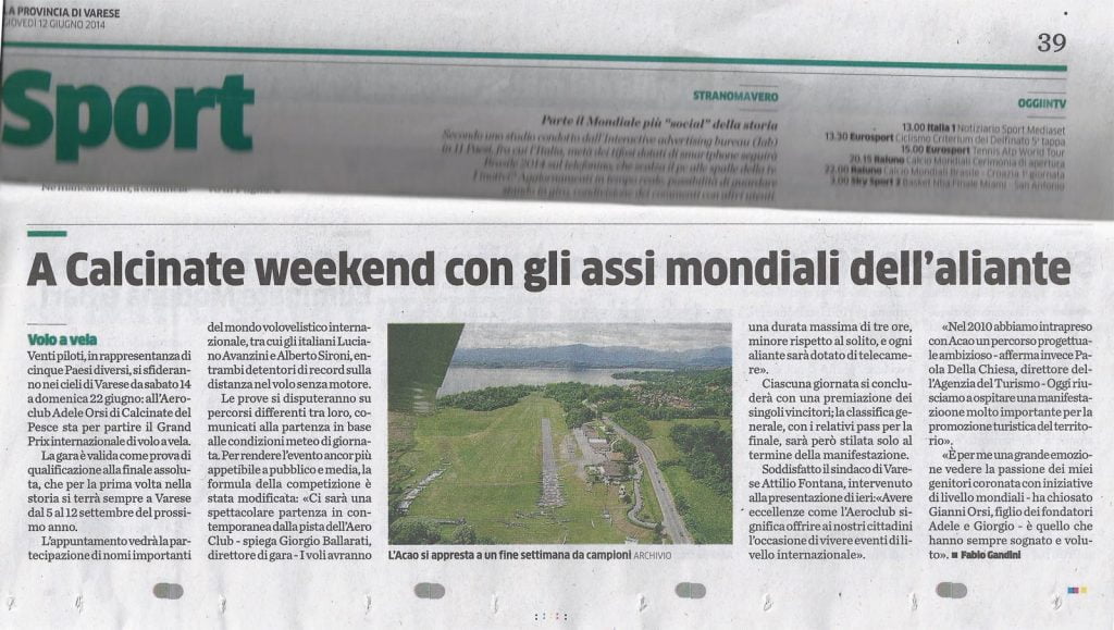 A Calcinate weekend con gli assi mondiali dell’aliante