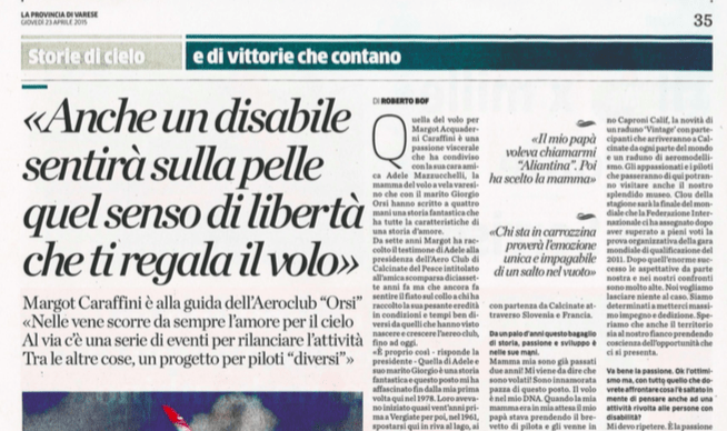 Anche un disabile sentirà sulla pelle quel senso di libertà che ti regala il volo
