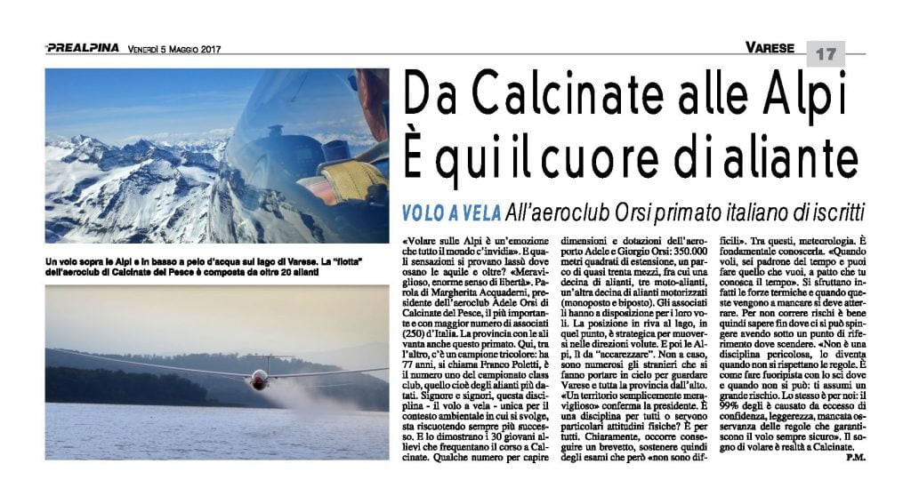 Da Calcinate alle Alpi. È qui il cuore di aliante